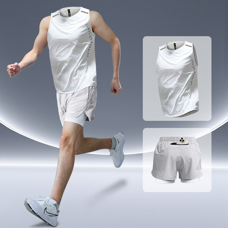 Designed with movement in mind, this two-piece set pairs a breathable mesh-lined short with a featherlight performance tank that keeps airflow constant through every sprint and stretch. The shorts feature a built-in liner and a hidden zip pocket for secure phone storage, while the sleeveless top wicks sweat fast and moves with your stride.