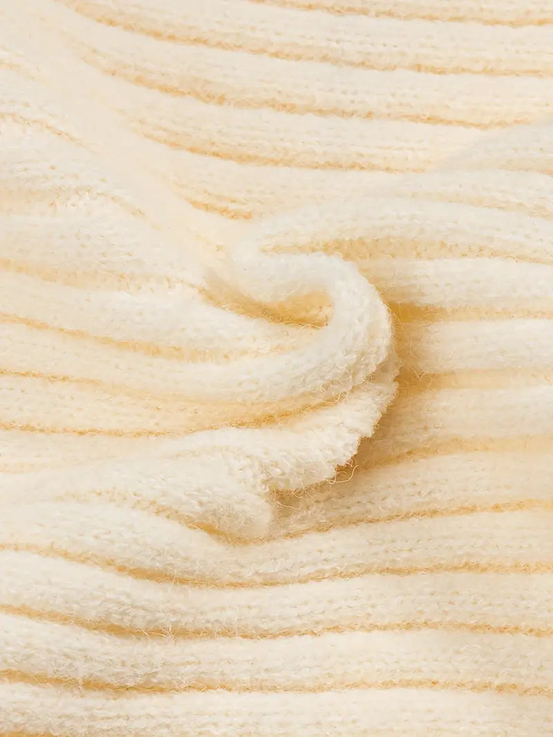 Crafted from a brushed knit blend that feels like a cloud, this skirt wraps the body in soft vertical ribs that stretch gently with movement. A cascading ruffle with a sculpted rosette detail blooms from the hip, bringing a quiet drama to every step.
